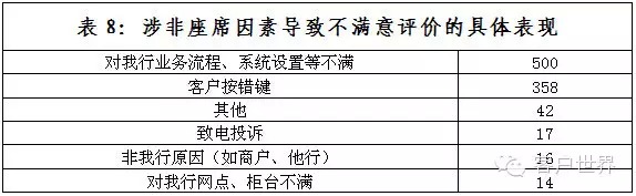 非座席因素指客户并不是针对座席的服务或业务解释存在不满意,而可能是对其他因素不满意,具体可能性影响因素分布如表8。